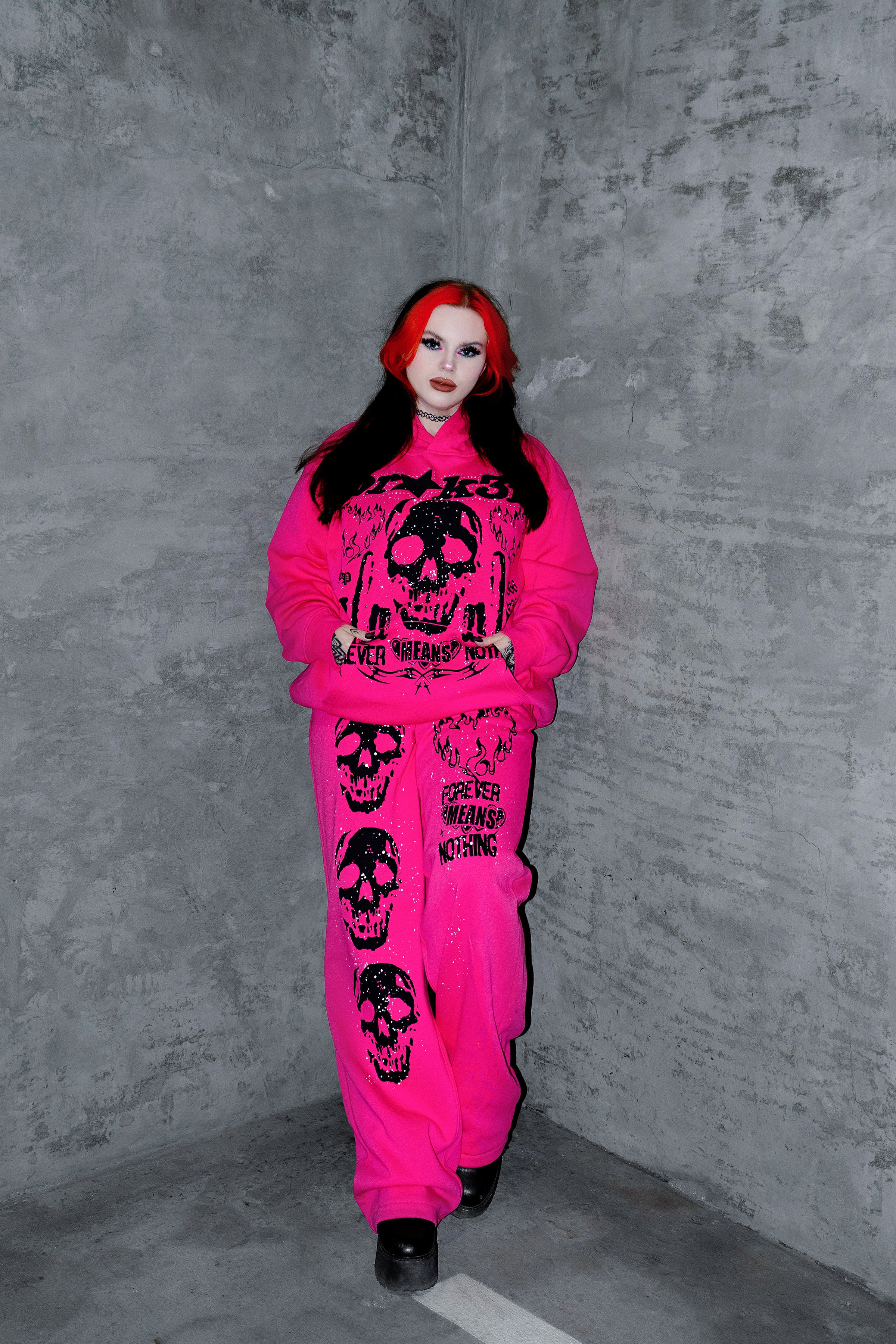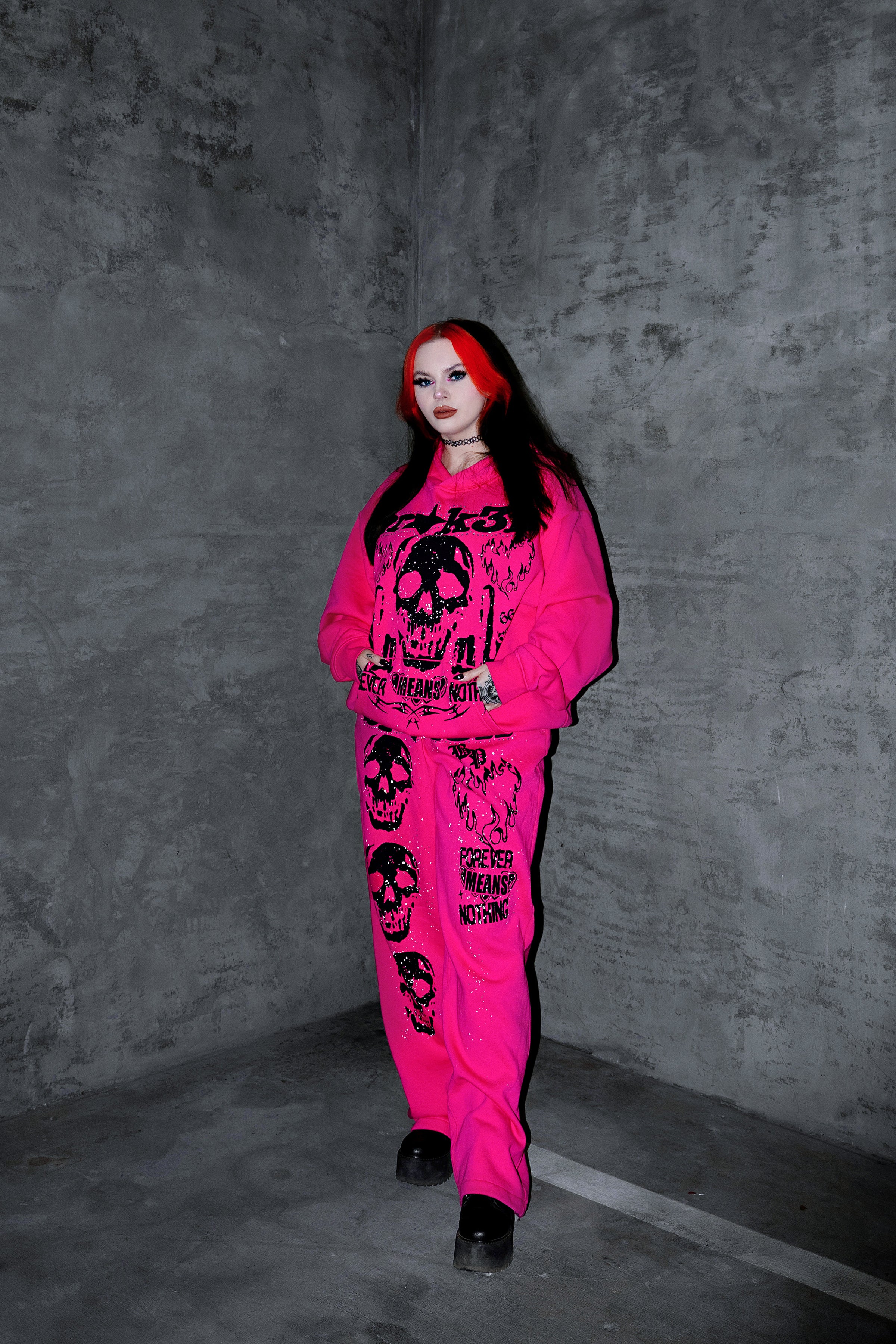 - Faceless Rhinestone Pink Wide Leg Sweatpants from Broken Promises.