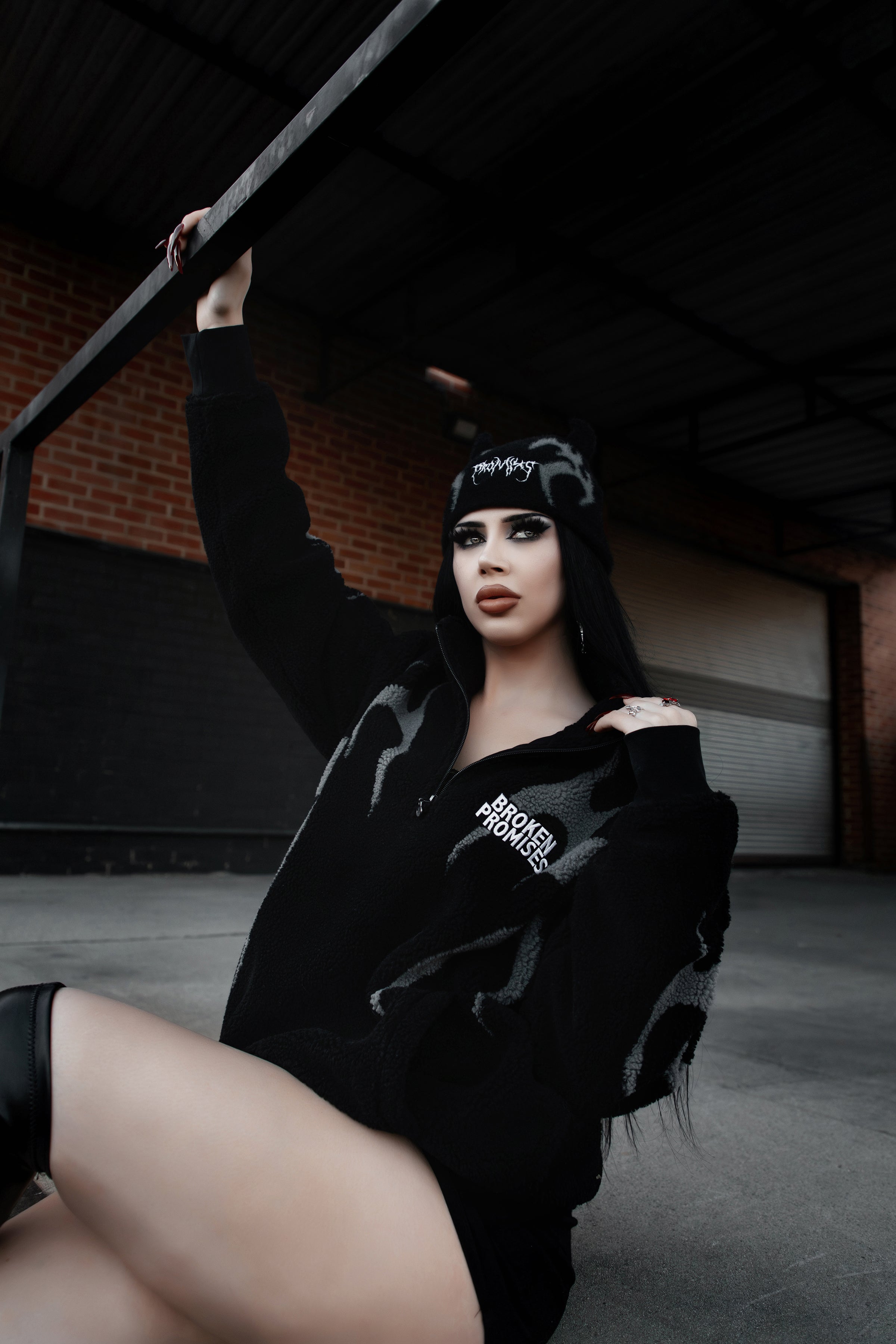 Embroidered branding on front.Sherpa construction throughout.Dual slash hand pockets.Elastic sleeve cuffs and bottom hem.Custom logo zipper.100% polyester.Machine wash cold, tumble dry low.Size & Fit Details20" (51cm) from top shoulder seam to bottom hem.Measurements may vary by size.