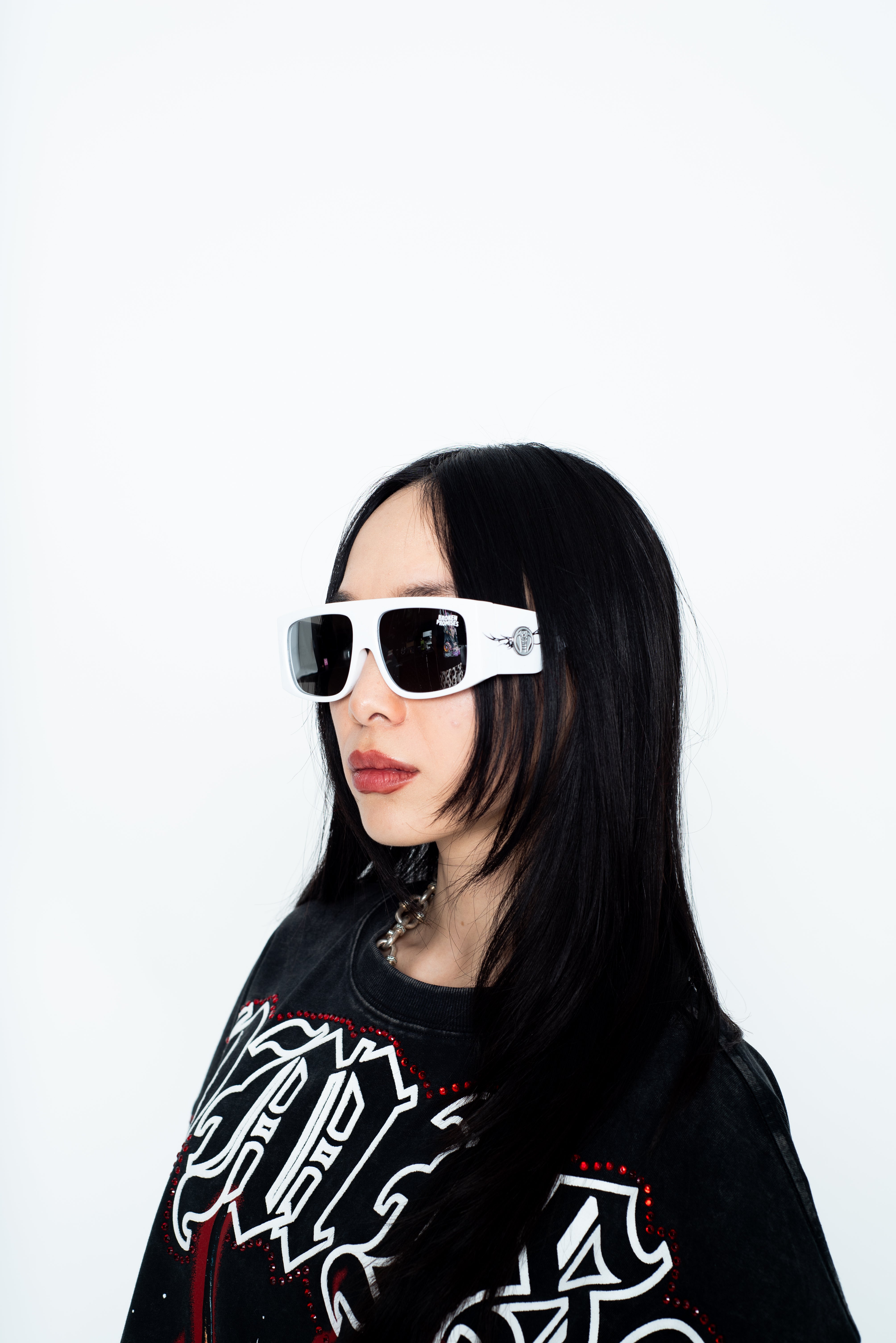 - Cyber White Sunglasses from Broken Promises.