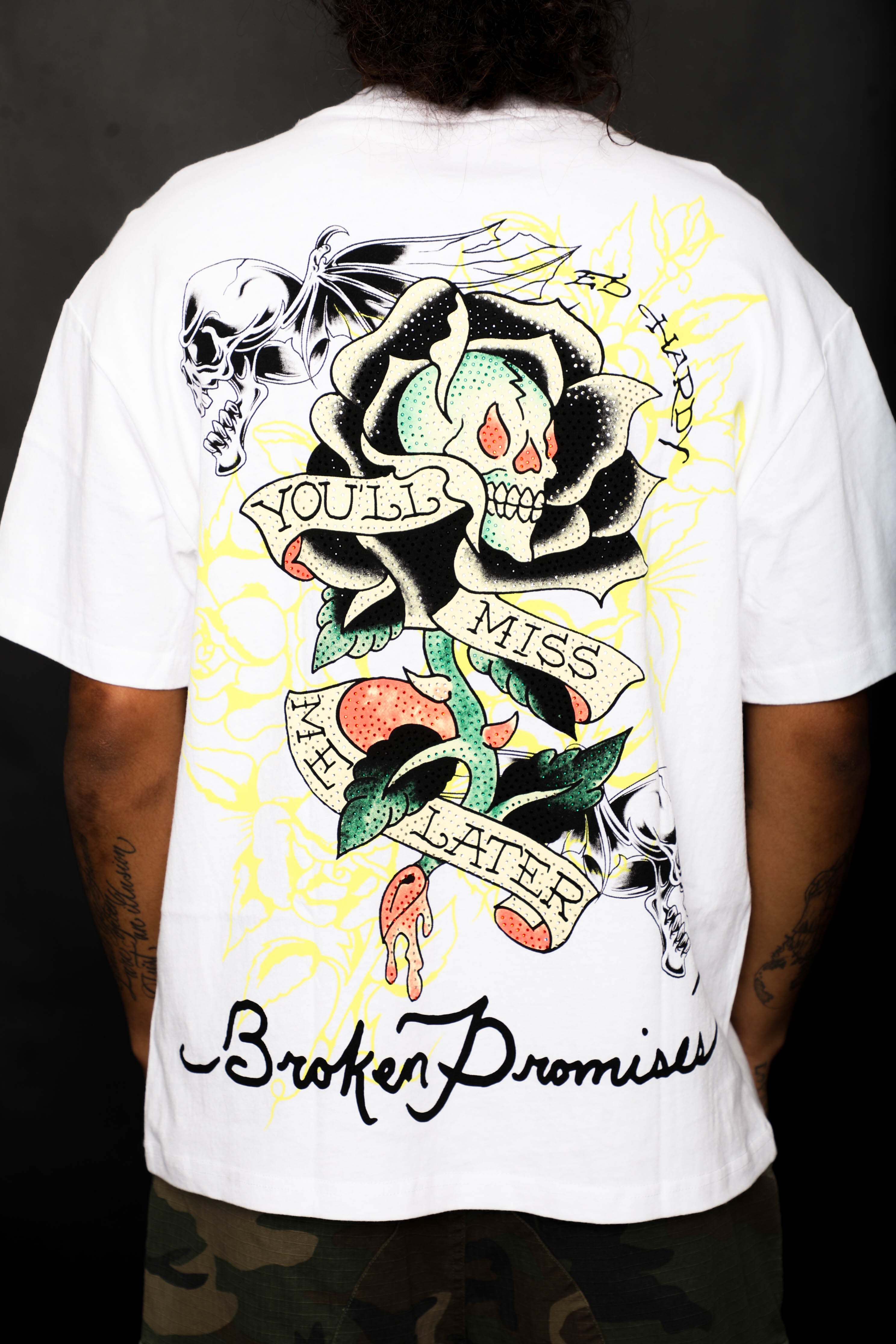 BP x Ed Hardy Rhinestone Miss Me Later Tee White