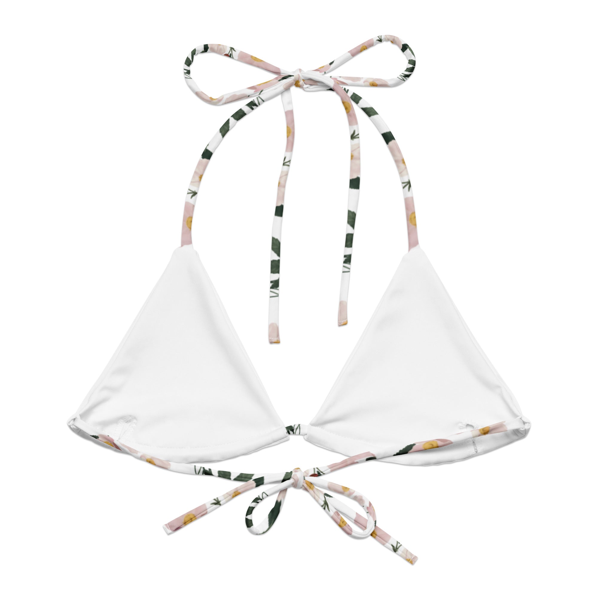 Disclaimer: To make your All-Over Print Recycled String Bikini Top last longer, thoroughly rinse it off after each use and get rid of any chlorine/salt residue.