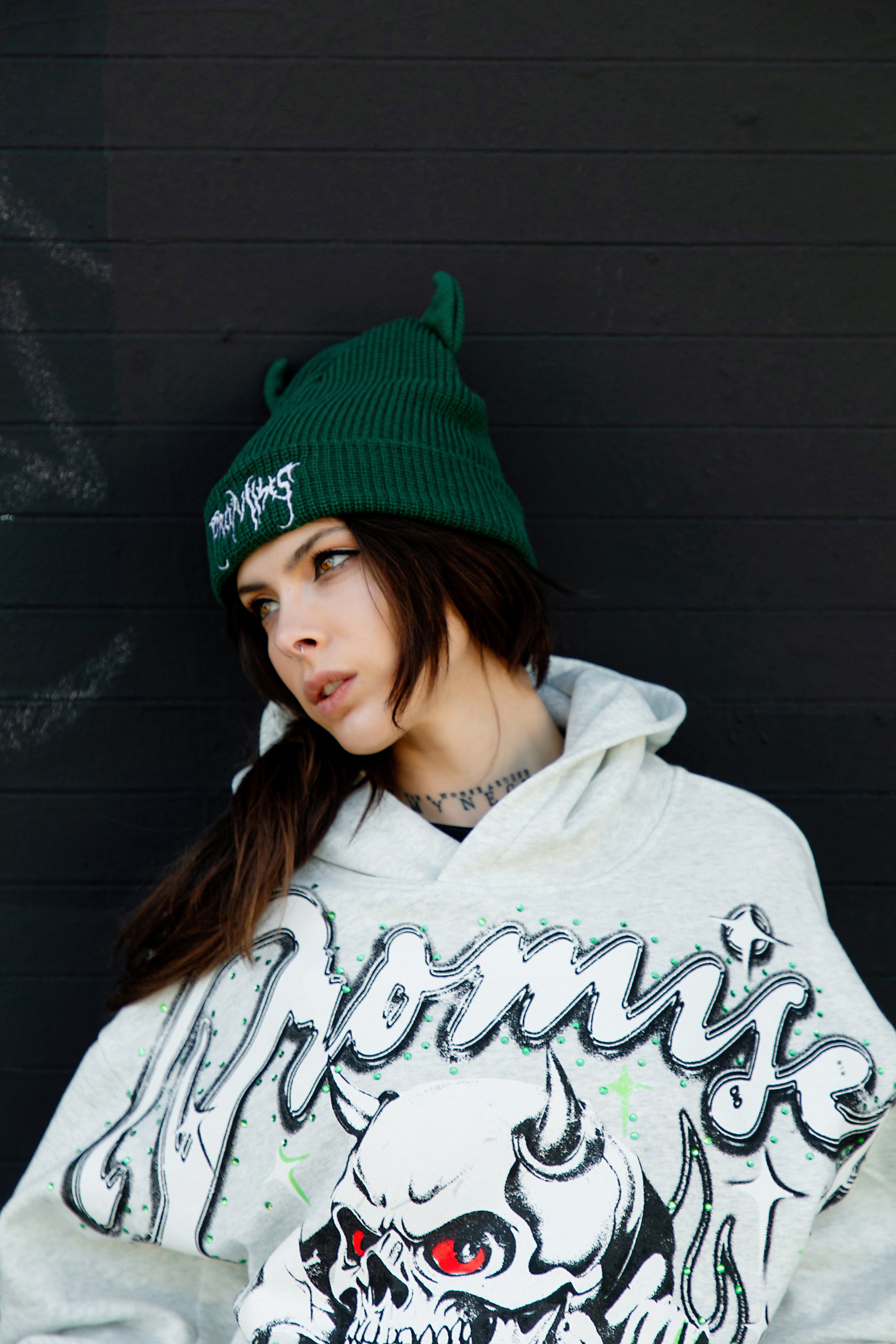 - Horned Forest Green Beanie from Broken Promises.