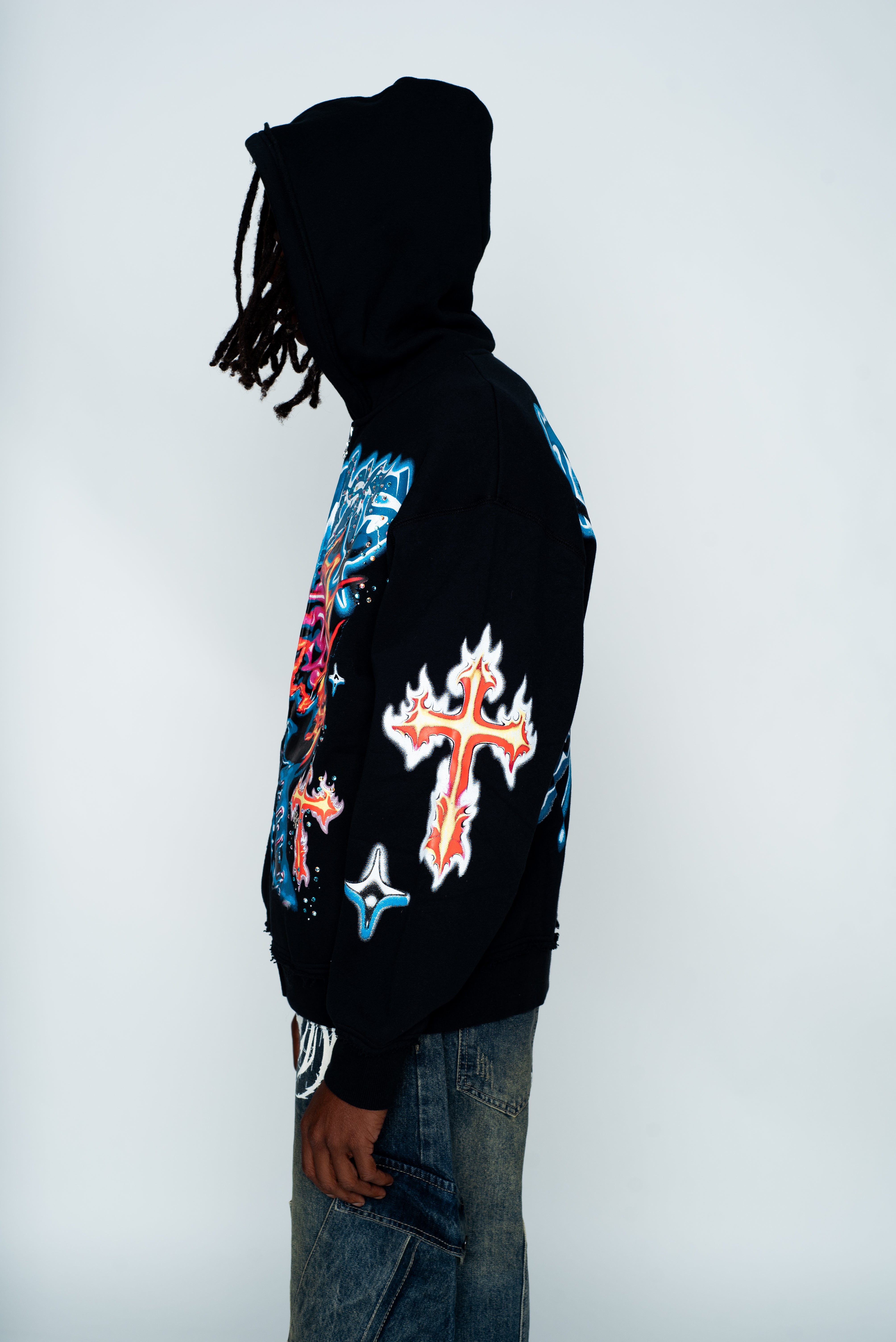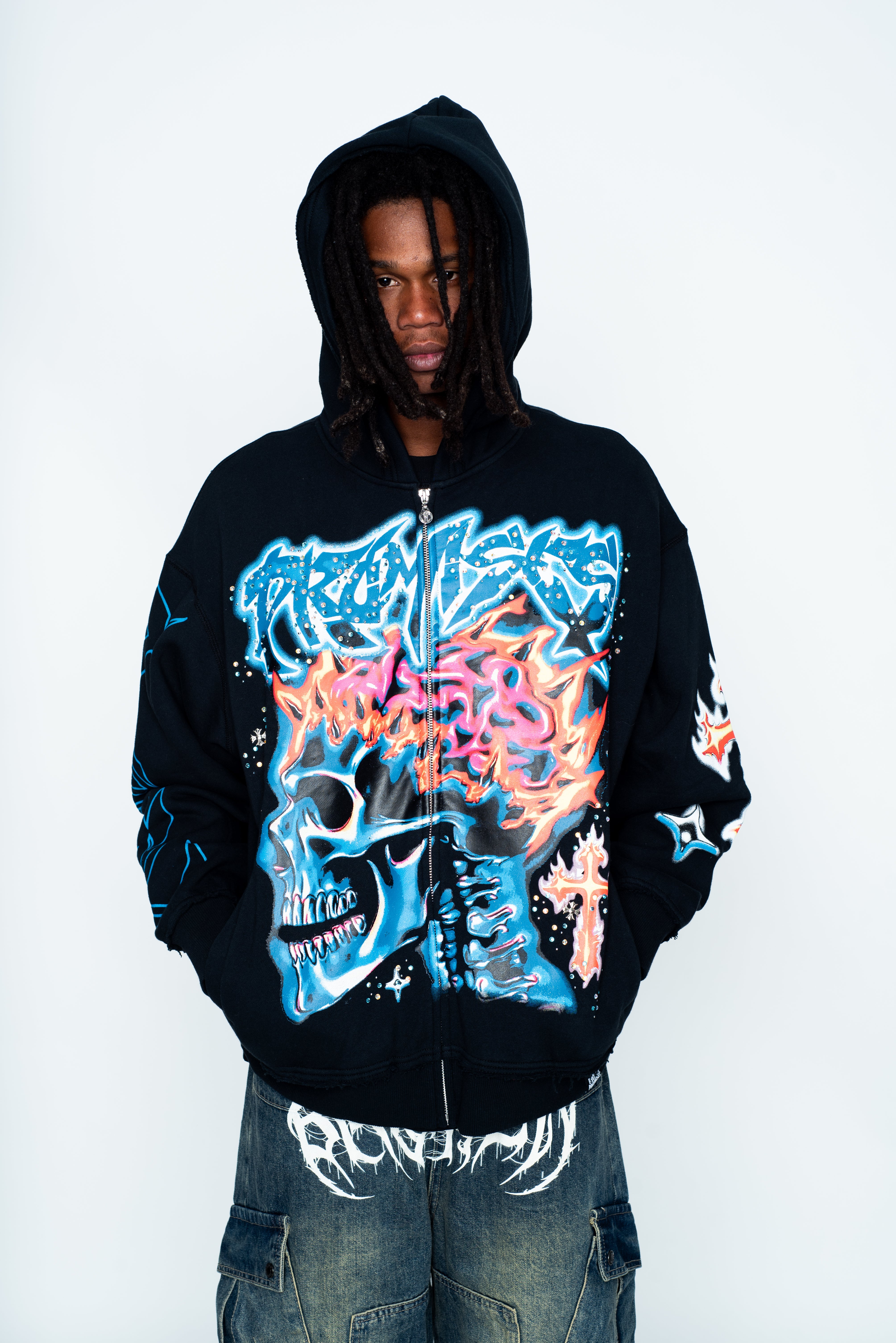 Numbskull Rhinestone Zip Hoodie Black